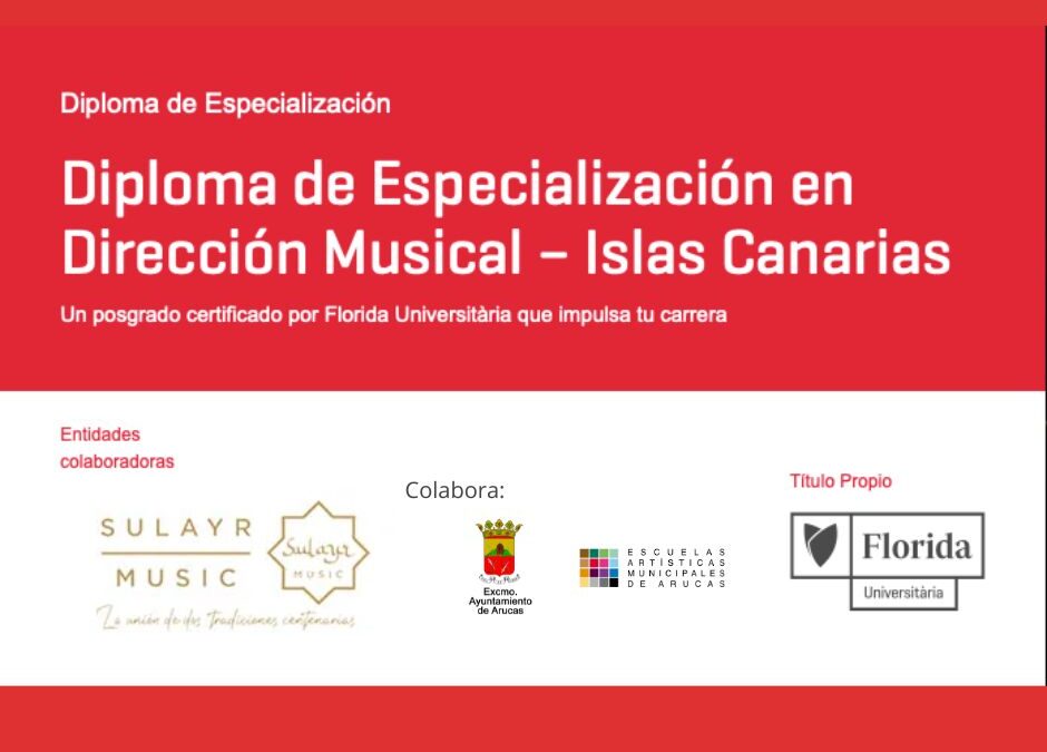 Las Escuelas Artísticas Municipales de Arucas han acogido el inicio de las clases de la tercera edición del Diploma de Especialización en Dirección Musical, organizado por Florida Universitaria Valencia y Sulayr Education. Este programa se ha consolidado como la única opción oficial para que los directores y directoras de bandas de música, orquestas, coros y otras agrupaciones musicales de las Islas Canarias puedan formarse sin salir del Archipiélago.